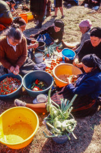 Les fidèles laborieuses gavent des bassines affamées